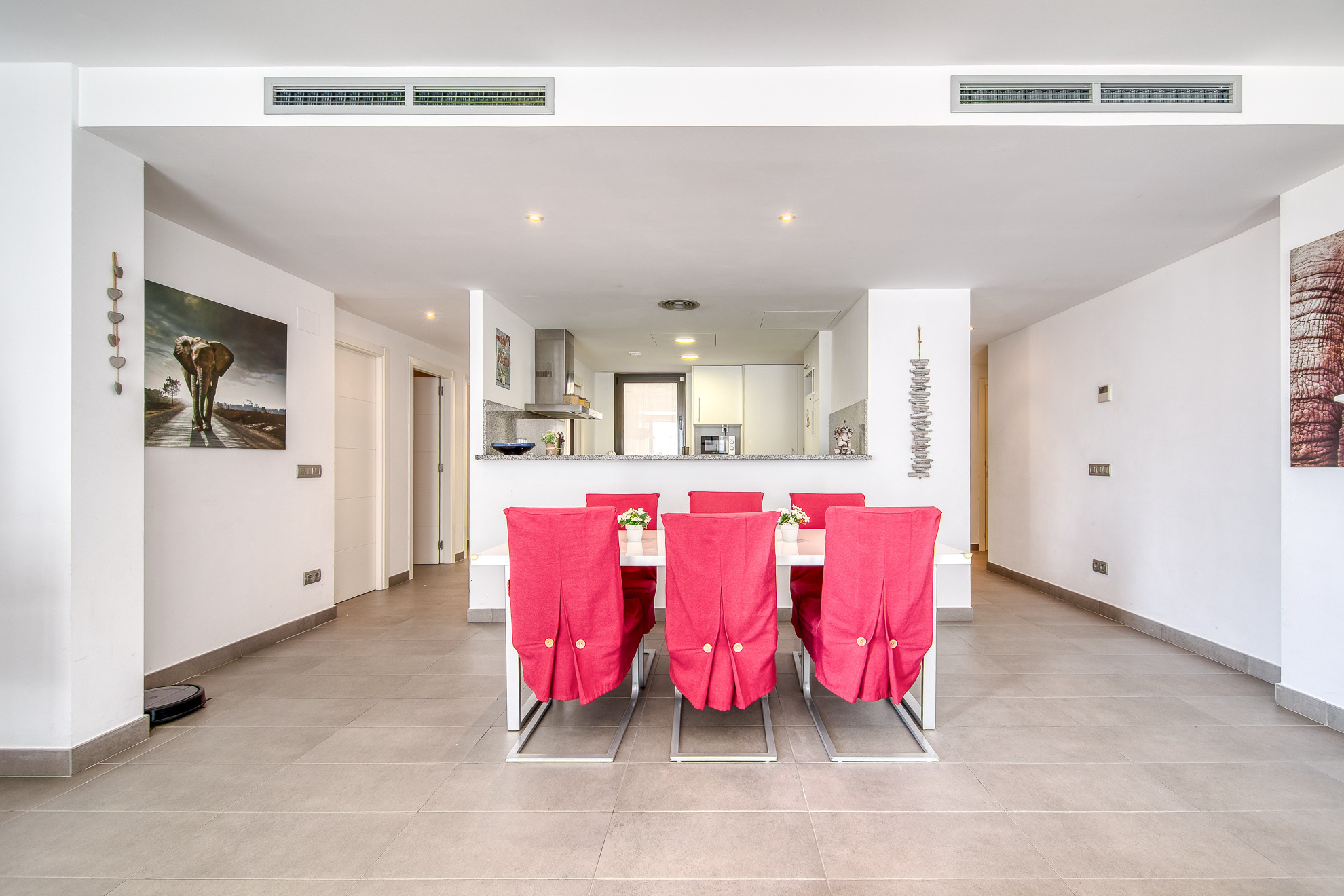 Totalmente equipado y con una decoración moderna y cuidada. Tiene una superficie de 100 m², además de dos terrazas: una de 7 m² y otra de 10 m². Desde el apartamento se puede disfrutar de vistas al mar. La playa se encuentra a tan solo 100 metros saliendo del edificio.