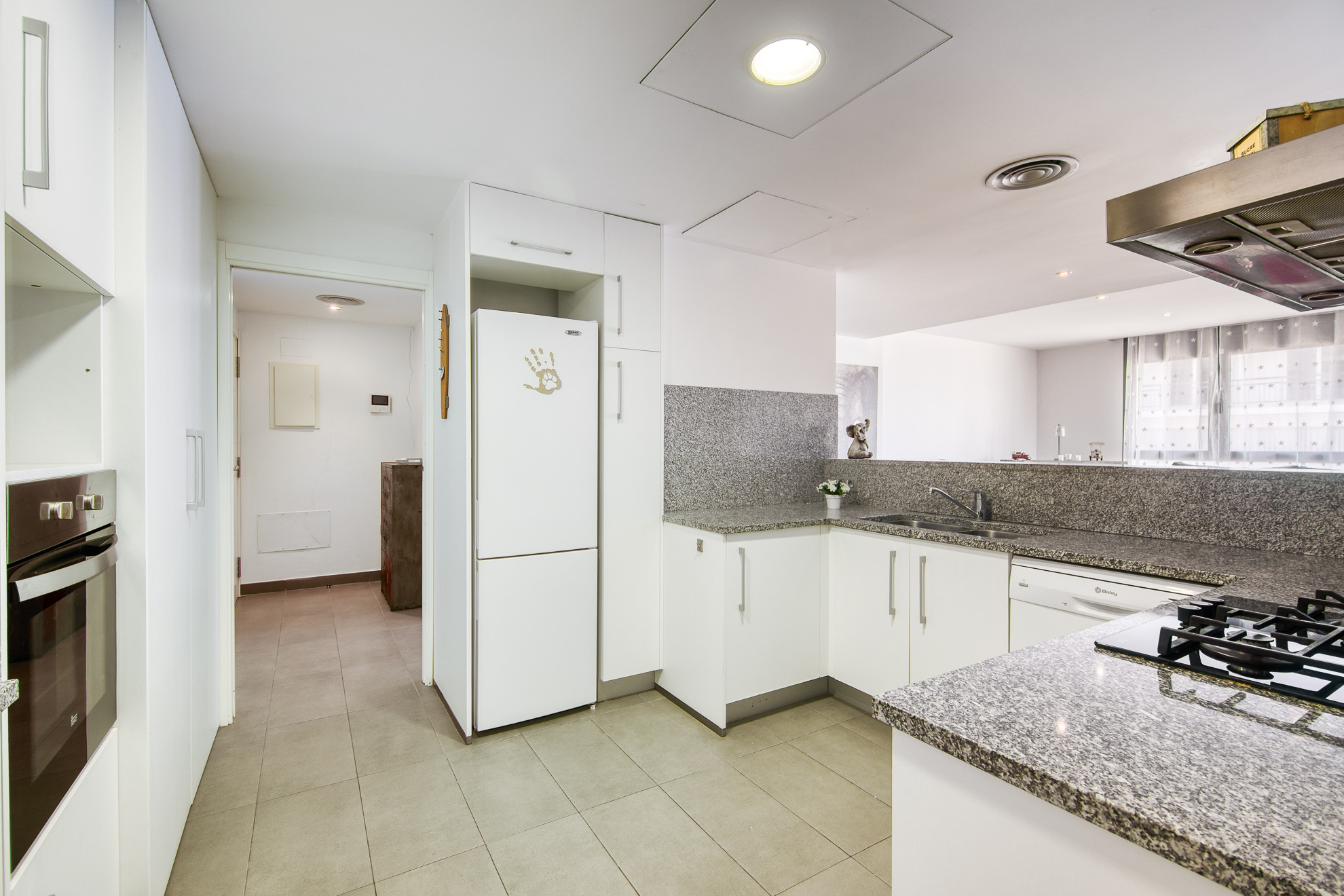 La cocina es muy moderna y está completamente equipada: vitrocerámica, horno, microondas, lavadora, cafetera, tostadora, nevera, congelador, lavavajillas y todos los utensilios necesarios para cocinar y comer (sartenes, ollas, platos, cubiertos, etc.).