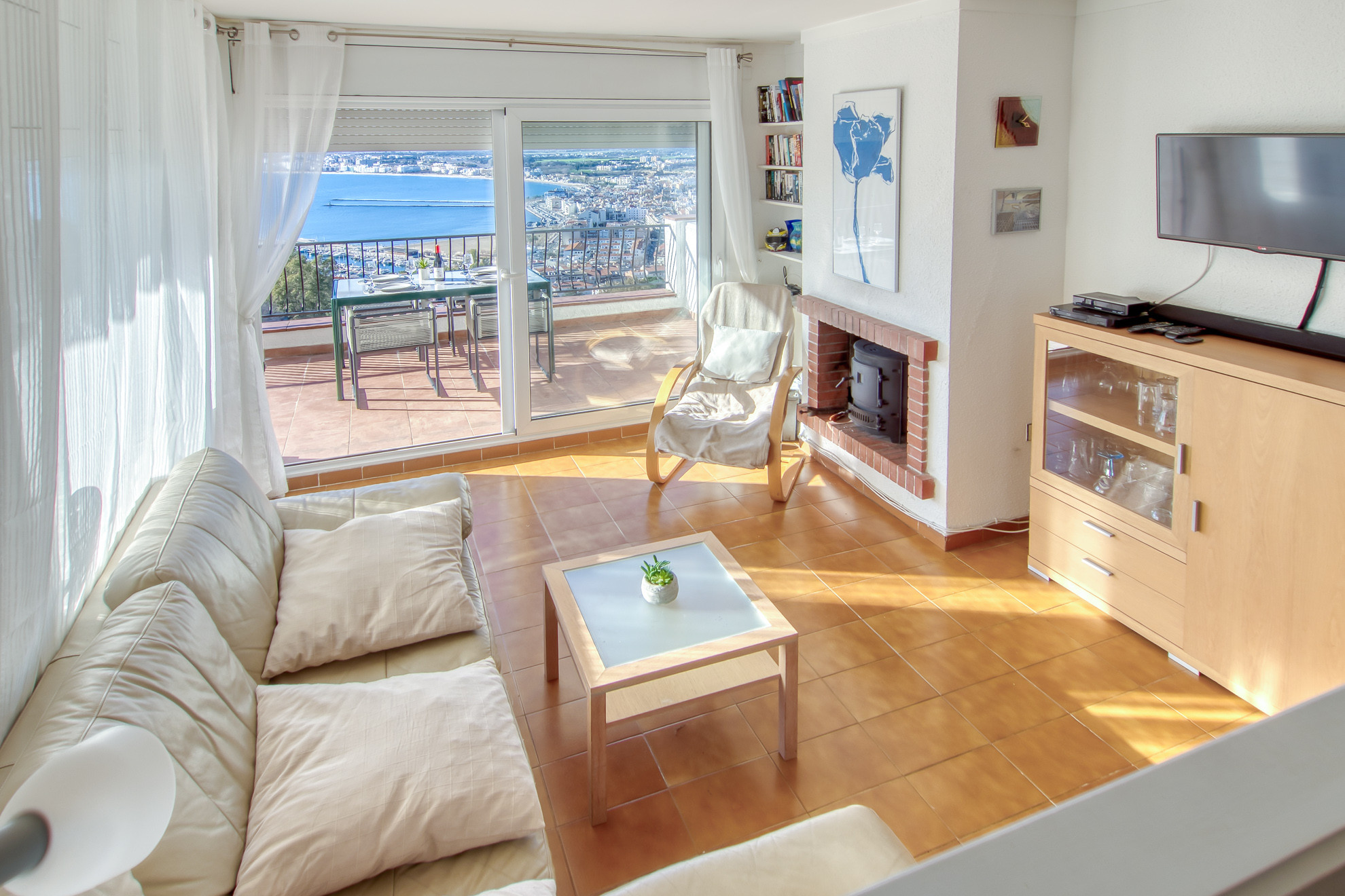 Apartamento con espectaculares vistas al mar y a la montaña y gran terraza con barbacoa.