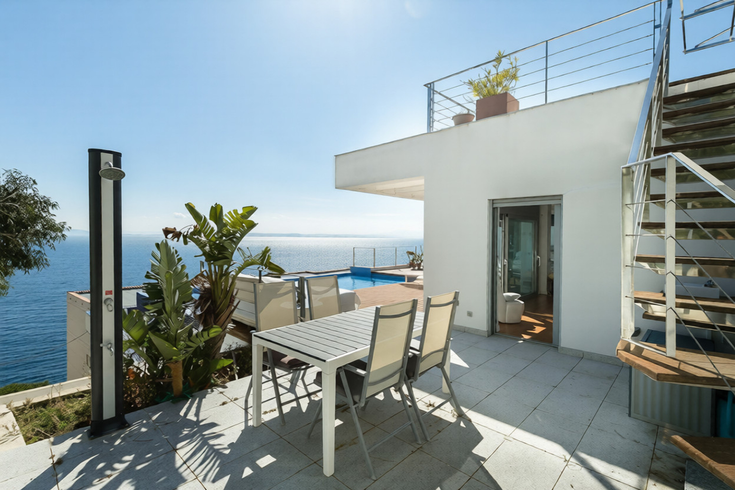 Von der Immobilie aus kann man in nur 2 Minuten zu Fuß über eine nahe gelegene Treppe zum Meer gelangen.