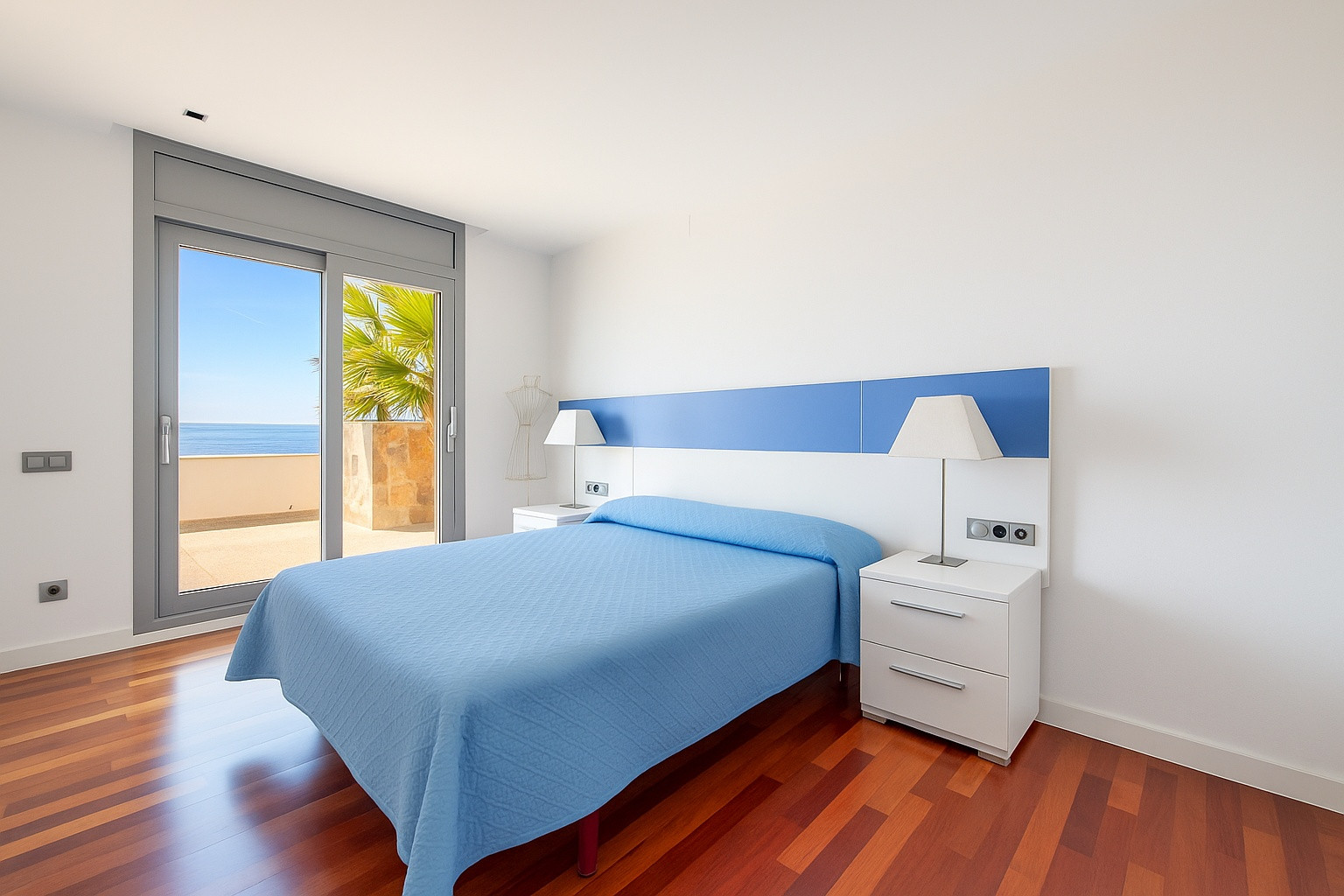 Ein Doppelzimmer mit direktem Zugang zur Terrasse und Meerblick