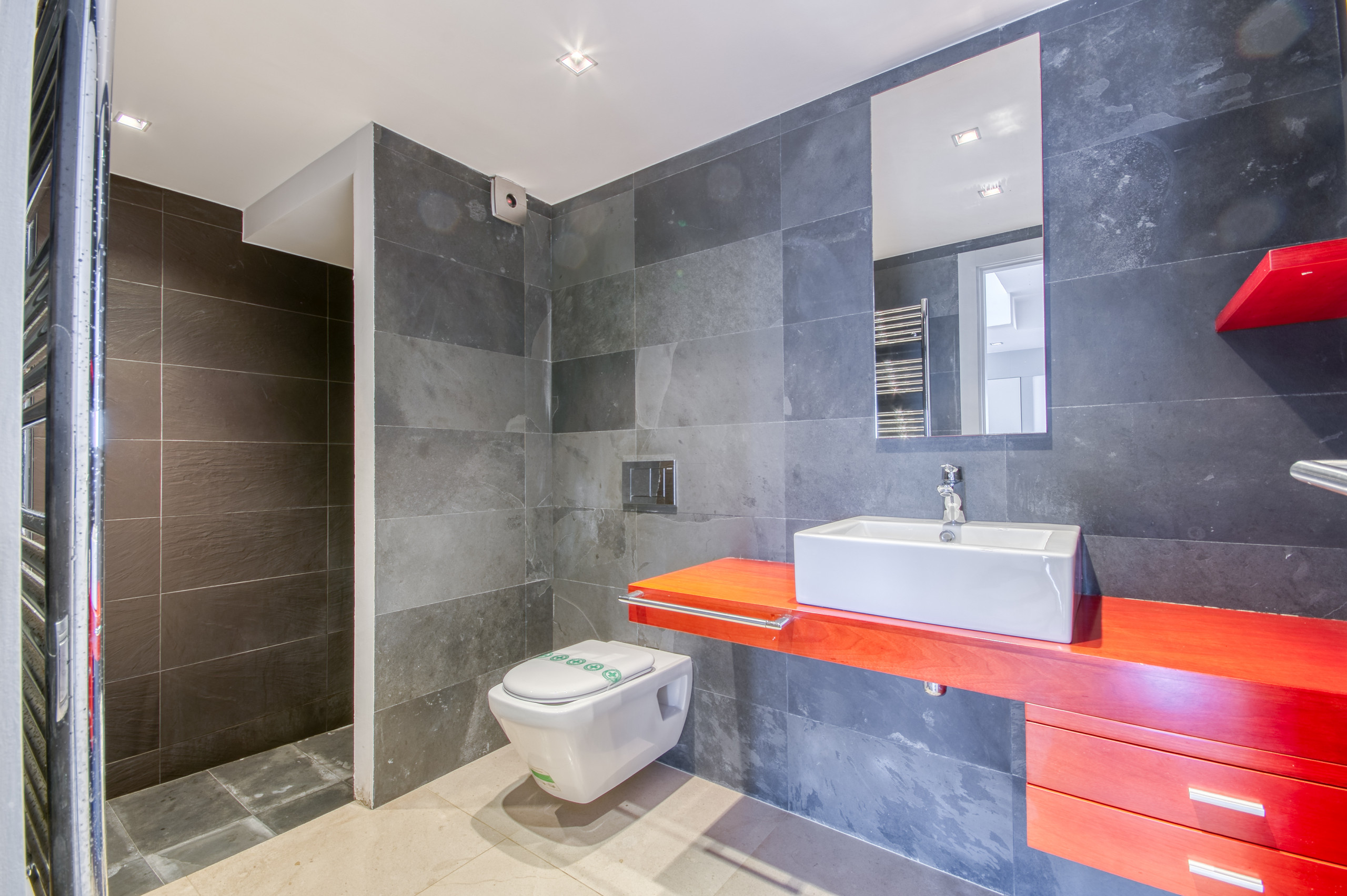 Zwei weitere Badezimmer mit WC, eins mit ebenerdiger Dusche, eins mit Badewanne