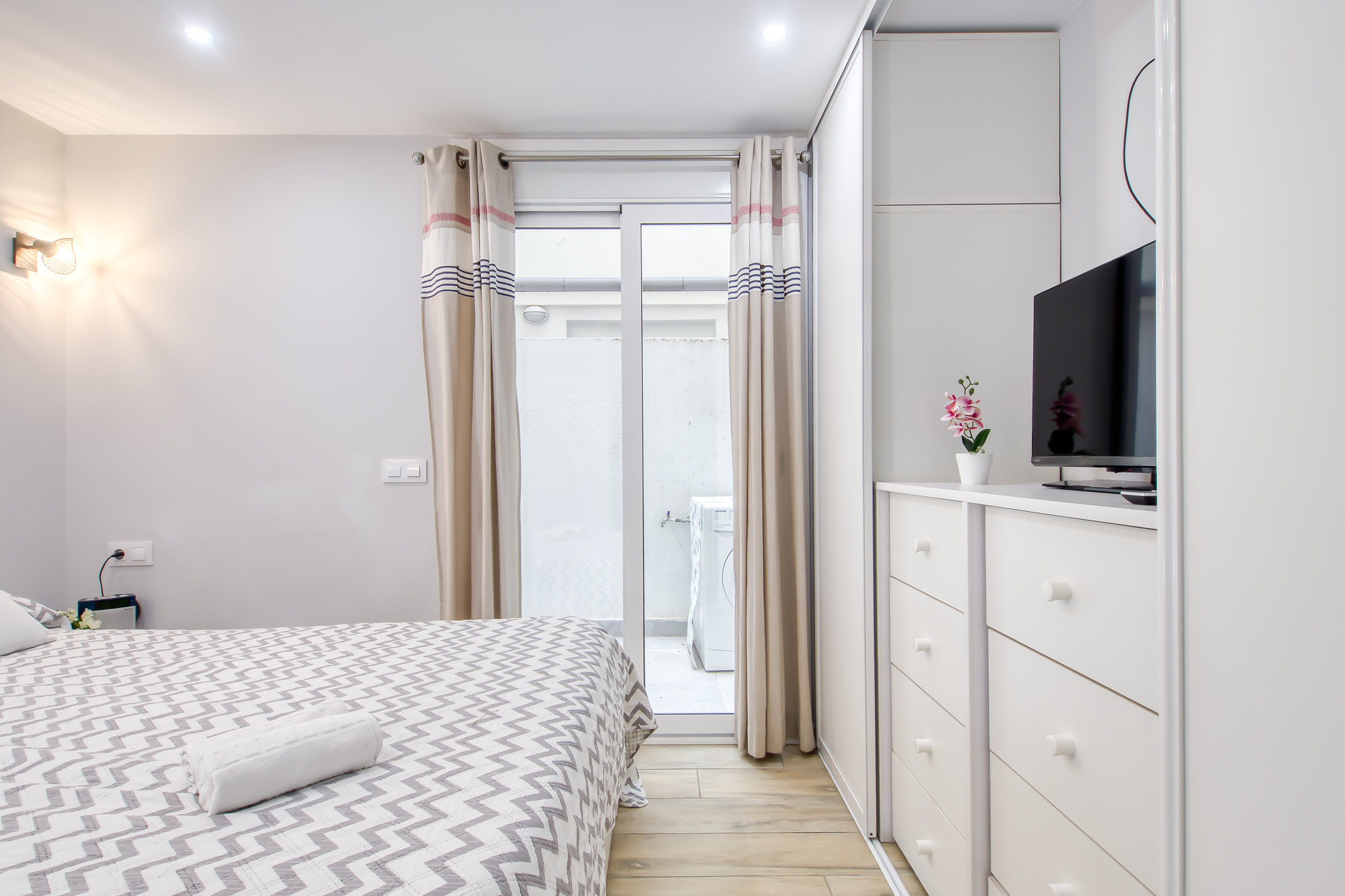 Eines der herausragenden Merkmale dieser Unterkunft ist die 7 m² große Terrasse, die sich ideal zum Entspannen im Freien und zum Genießen des mediterranen Klimas eignet. Darüber hinaus ist die Wohnung mit einer Waschmaschine, einem Bügeleisen, einer Klimaanlage und einem privaten Außenparkplatz im selben Gebäude ausgestattet, was Komfort und Zweckmäßigkeit während Ihres gesamten Aufenthalts garantiert.