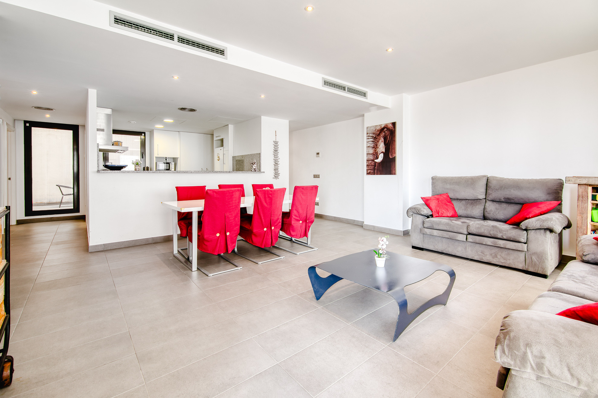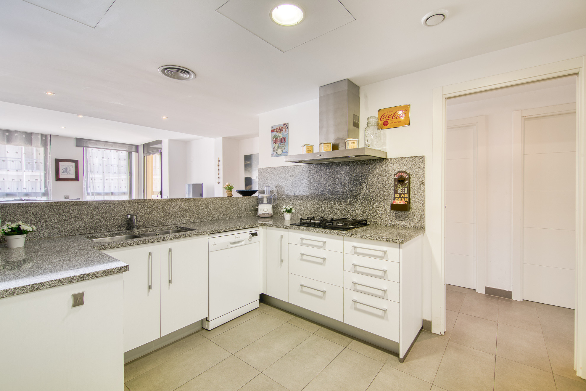 Die Küche ist sehr modern und komplett ausgestattet: Glaskeramikkochfeld, Ofen, Mikrowelle, Waschmaschine, Kaffeemaschine, Toaster, Kühlschrank, Gefrierschrank, Geschirrspüler und alle notwendigen Kochutensilien (Pfannen, Töpfe, Teller, Besteck usw.).