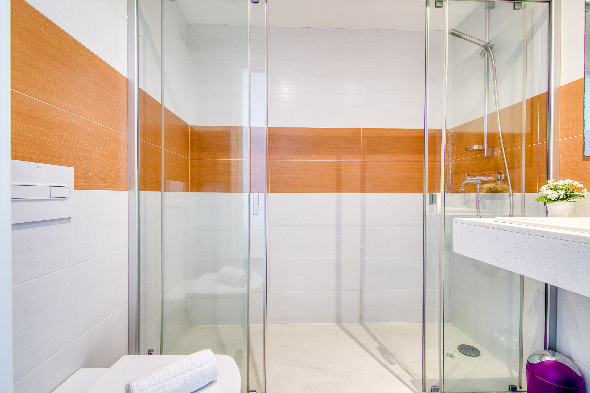 Es gibt Satelliten-TV und 2 Badezimmer mit Dusche.