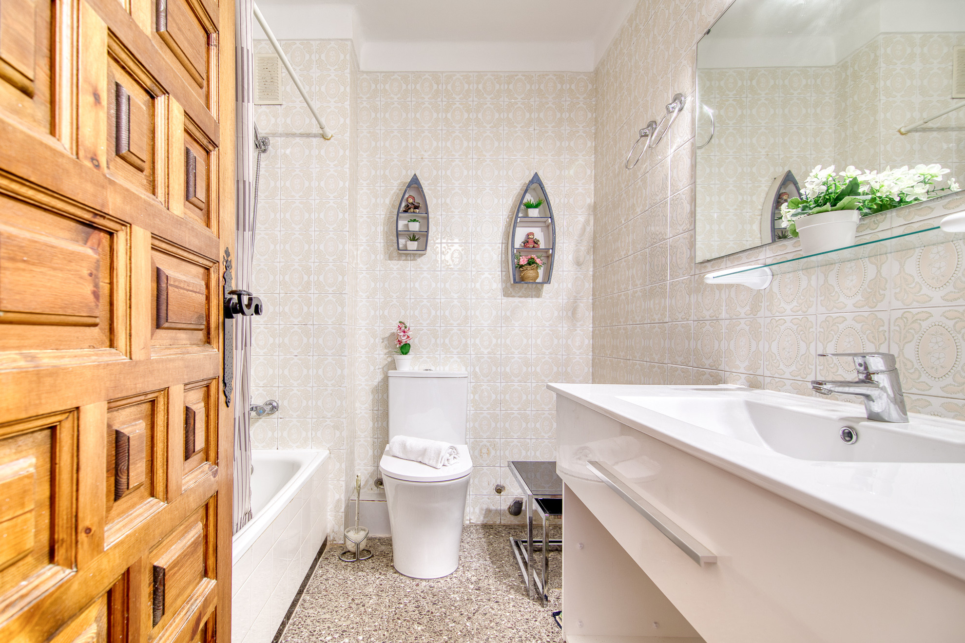 Eines der herausragenden Merkmale dieser Unterkunft ist die 7 m² große Terrasse, die sich ideal zum Entspannen im Freien und zum Genießen des mediterranen Klimas eignet. Darüber hinaus ist die Wohnung mit einer Waschmaschine, einem Bügeleisen, einer Klimaanlage und einem privaten Außenparkplatz im selben Gebäude ausgestattet, was Komfort und Zweckmäßigkeit während Ihres gesamten Aufenthalts garantiert.