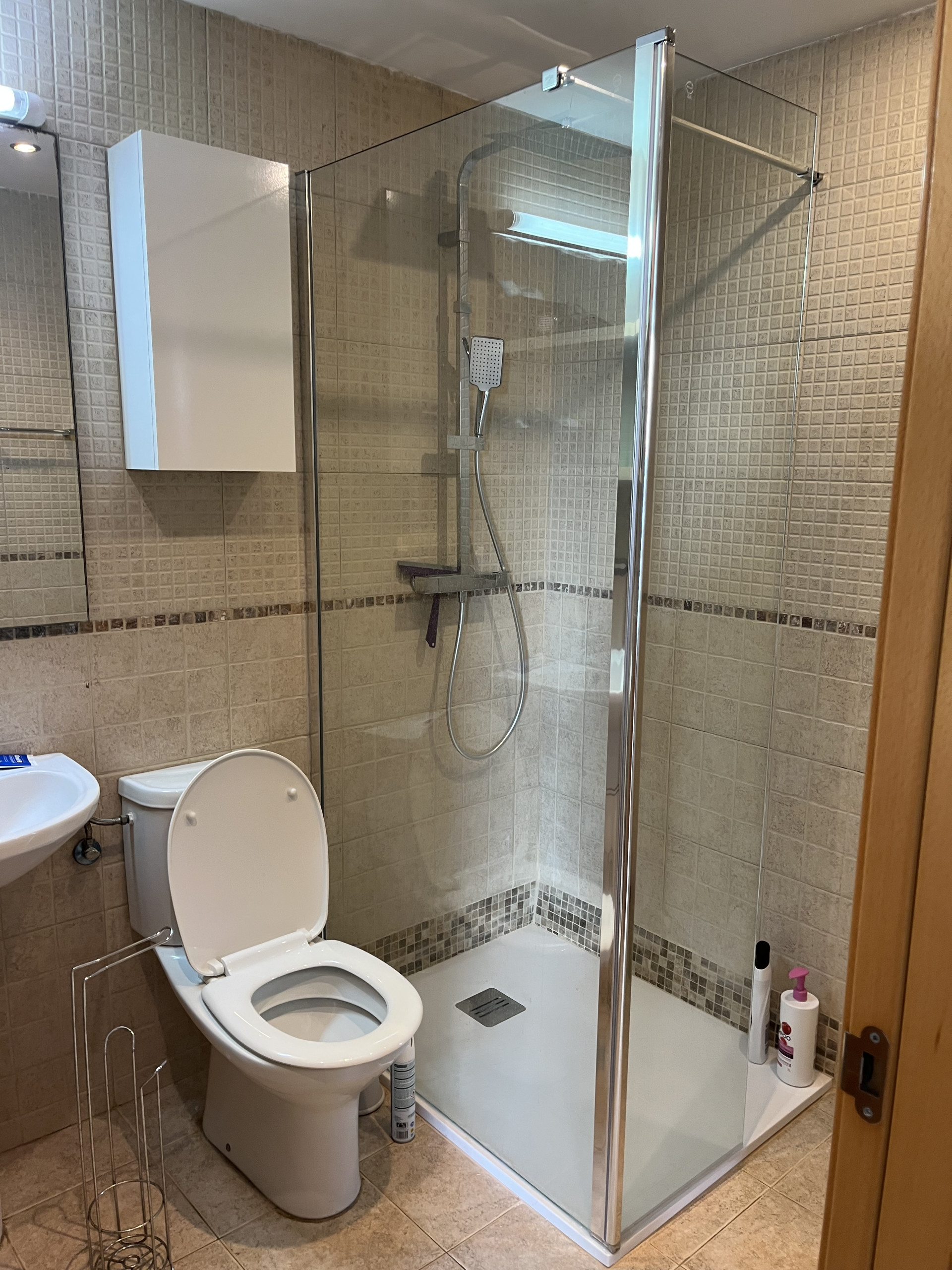 The open-plan kitchen, with ceramic hob, is equipped with a fridge, microwave, oven, freezer, washing machine, dishwasher, dishes / cutlery, kitchen utensils, coffee machine, toaster and kettle. Full bathroom with shower. Iron, parking, satellite TV.Air-conditioning