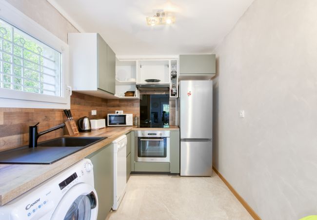 Bienvenue à l'appartement à Roses !!!! . C'est un endroit parfait pour des vacances en famille au bord de la mer. Situé dans le complexe des Jardins 2, bien connu pour sa piscine et ses espaces verts. Doté d'une chambre et pouvant accueillir jusqu'à 4 personnes, ce logement cosy de 30 mètres carrés est confortable et très lumineux, offrant une vue sur le magnifique jardin et la piscine rafraîchissante. .
